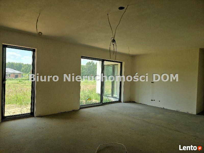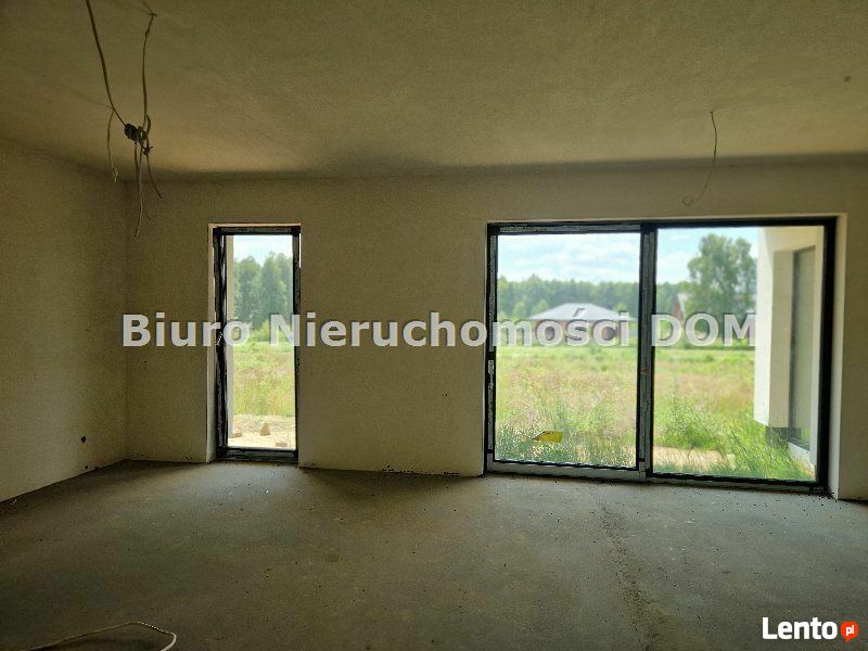 Nowoczesny, parterowy dom z dużymi trzyszybowymi oknami i wysokością pomieszczeń 2,7 m